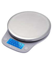 The 0.6-in thick scale takes up little space in a kitchen drawer, cabinet, or travel bag.